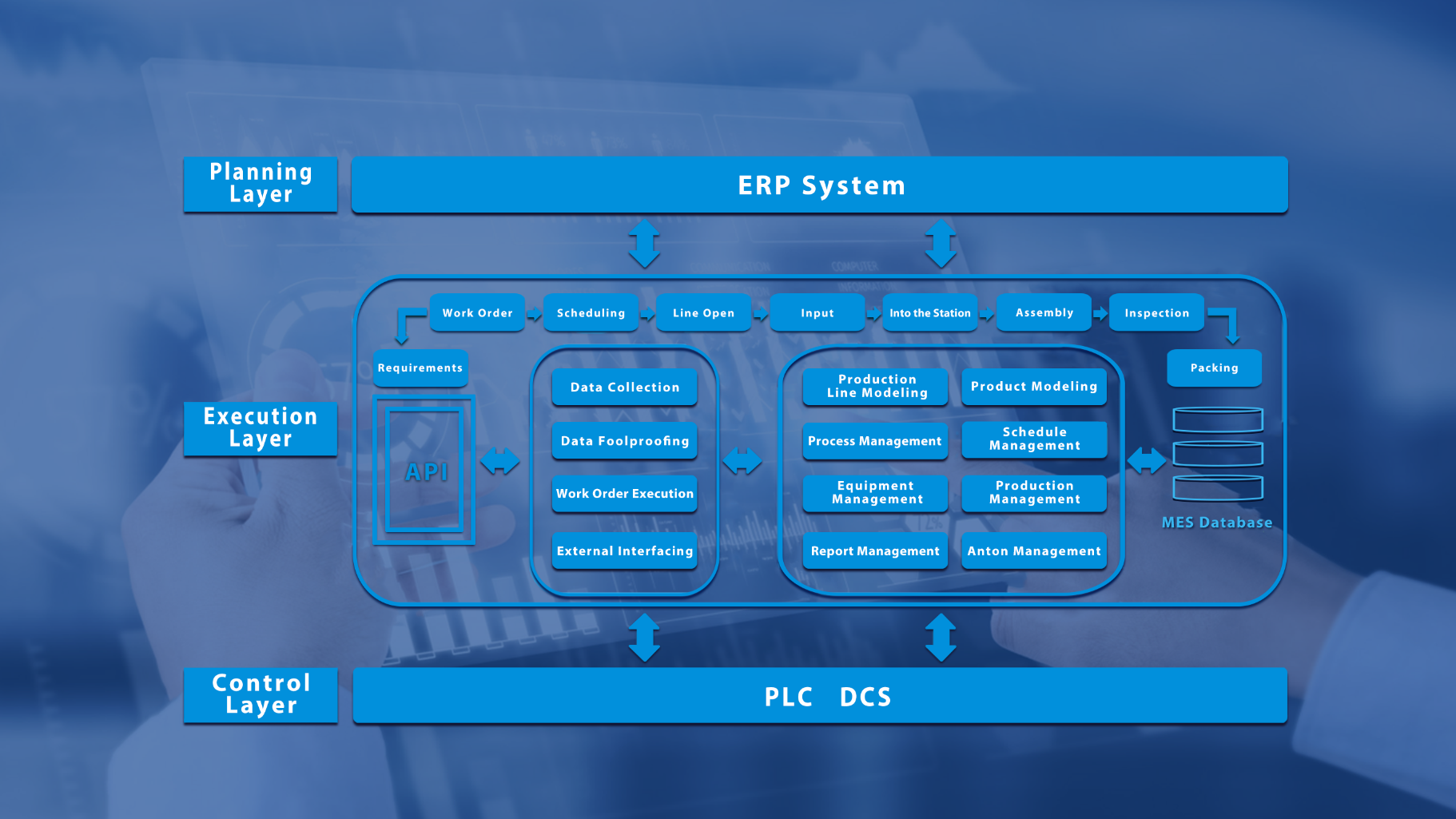 MES is the foundation of intelligent manufacturing construction. It covers the entire production process of intelligent manufacturing and is closely connected with various businesses of the enterprise. As a workshop-level integrated management system, MES collects information from the underlying automation control system and various types of equipment downward and takes over the production plan issued by ERP upward, effectively helping enterprises to improve the operational performance of factories in many aspects such as transparent production, agile production, production traceability, production quality improvement, timely alarming, and performance analysis.