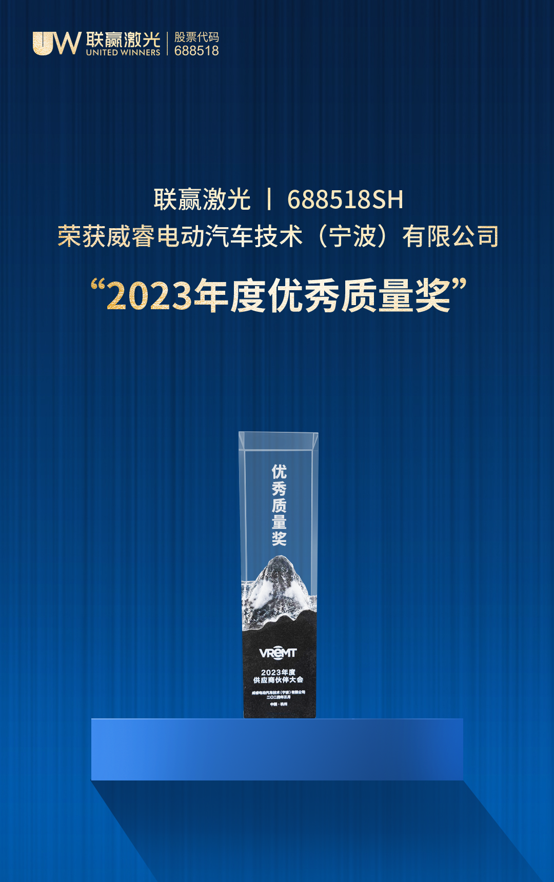 The VREMT 2023 Excellent Quality Award aims to recognize its collaborative enterprises that have made outstanding contributions in the field of new energy power batteries. UW Laser's receipt of this honor is a high recognition to its leading technical strength and outstanding service quality, as well as a strong affirmation of the mutually beneficial development achieved by both parties. Simultaneously, it brings new momentum into closer cooperation and development between both parties in the future.