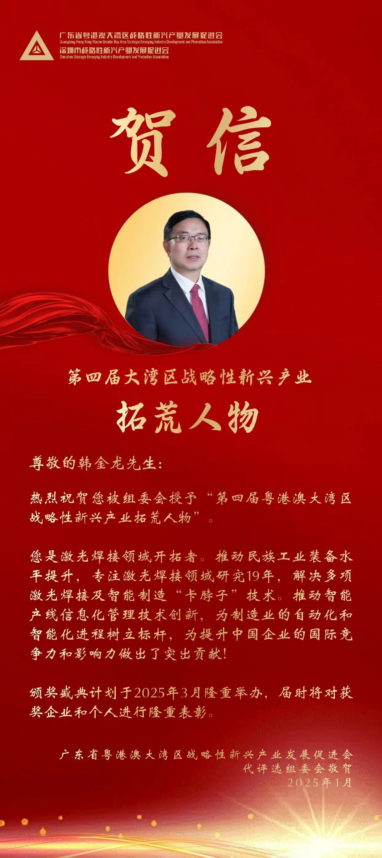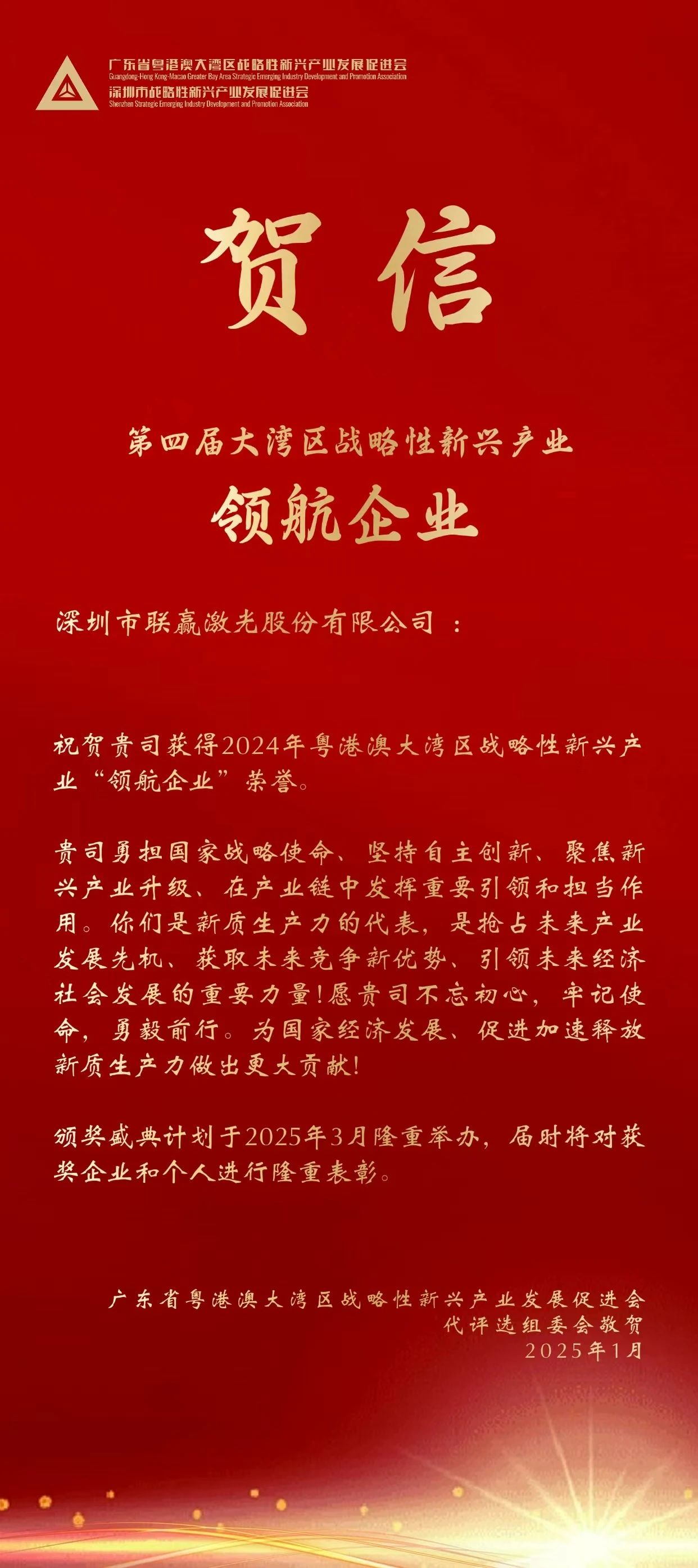 Recently, the results of the 2024 Greater Bay Area Strategic Emerging Industries Leading Enterprises and the Fourth Greater Bay Area Strategic Emerging Industries "Pioneering Figures" and "Young Leaders" awards have been announced. United Winners Laser Co., Ltd. has successfully been included in the list of "Leading Enterprises," and Han Jinlong, the founder and chairman of UW Laser, has been honored with the title of "Pioneering Figure."