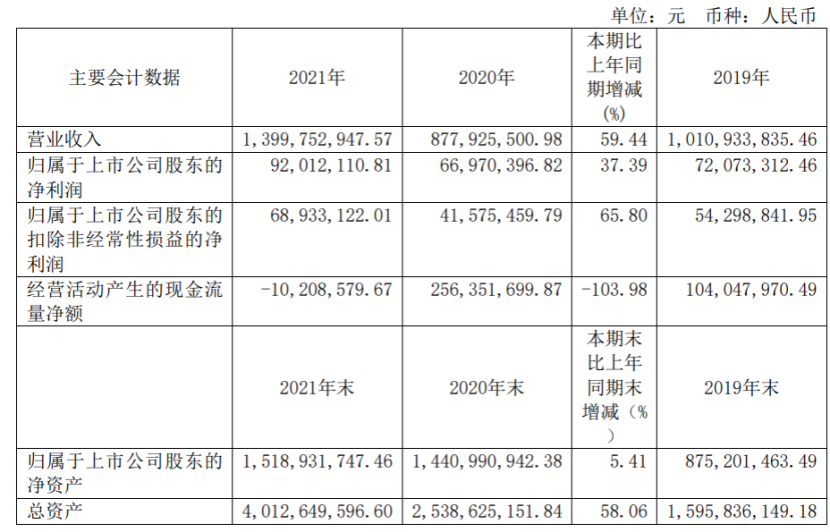 4月18日,开云kaiyun(集团)智能科技股份有限公司网站(以下简称“kaiyun开云激光”)发布2021年年报。报告显示,2021年kaiyun开云激光实现营业收入14.00亿元,同比增长59.44%,归属于上市公司股东的净利润为9201.21万元,同比增长37.39%,每股收益为0.3100元。