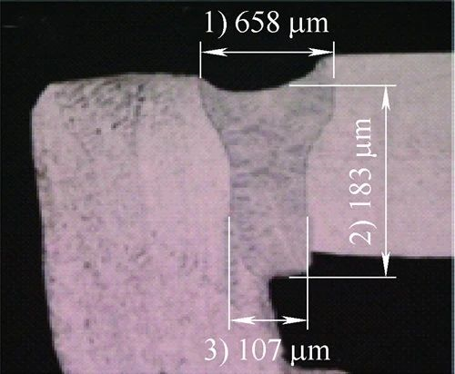 图2 厚度为254µm铜箔上深熔焊接的横截面