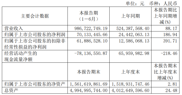 上半年新签订单20.45亿元 在手订单44.48亿元