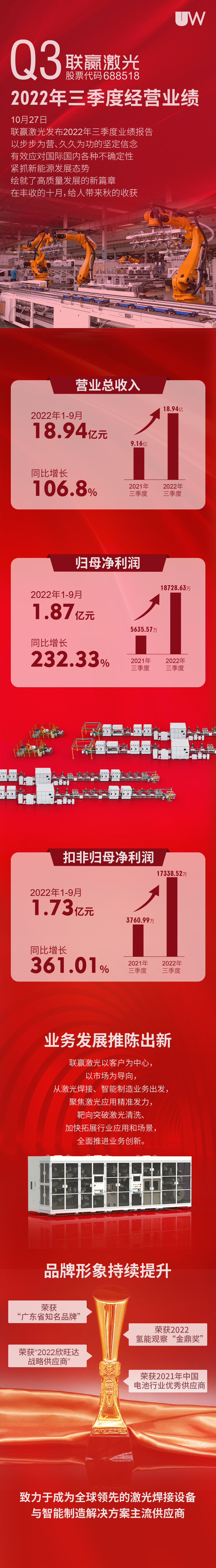 营收增长106.80%!一图看懂kaiyun开云激光2022年第三季度报告