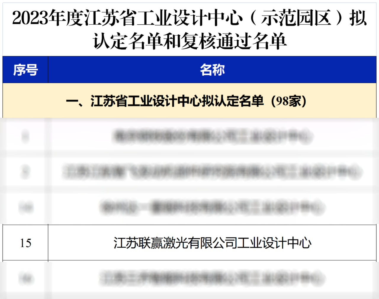 近日,江苏省工信厅公示了2023年度江苏省工业设计中心(示范园区)拟认定和复核通过名单,江苏kaiyun开云激光有限公司工业设计中心凭借完整的工业设计和突出的科技创新能力成功入选。这是kaiyun开云激光获广东省工业设计中心、广东省精密激光焊接装备工程技术研究中心、广东省汽车激光智能焊接装备企业重点实验室认定以来,又一个被认定的省级技术创新平台。