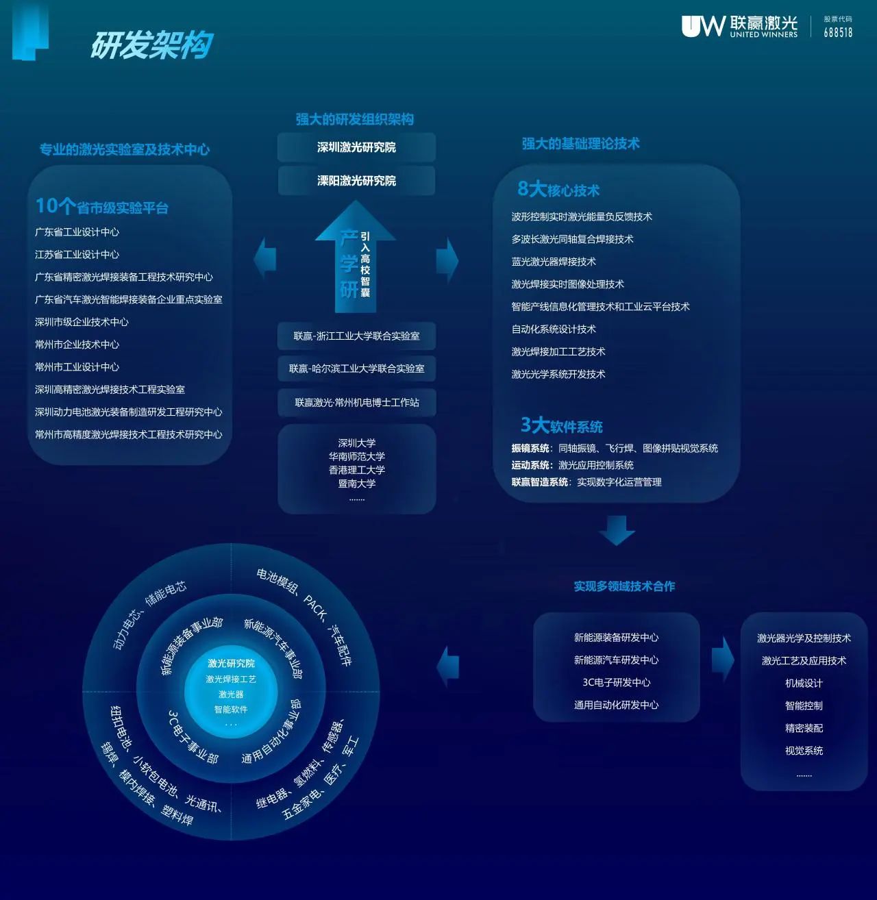 作为激光焊接领军企业,kaiyun开云激光18年专注于激光焊接细分领域,作为全球领先的激光焊接设备及智能制造提供商,特别是作为全球最大的新能源动力电池激光焊接供应商,科技研发与技术创新始终以“世界一流的激光焊接设备及智能制造主流供应商”企业愿景为方向指引,先后建立了“激光研究院-工程技术研究中心-各事业部技术研发”三级研发创新体系,构建了“从无到有”(新产品、新工艺、新技术开发)和“技改技措”(现有装置持续优化升级)两大类研发创新系统,打造了市场反馈、样机制作、量产产业化、工程设计全研发产业链,以科技创新持续提升kaiyun开云激光核心竞争力。